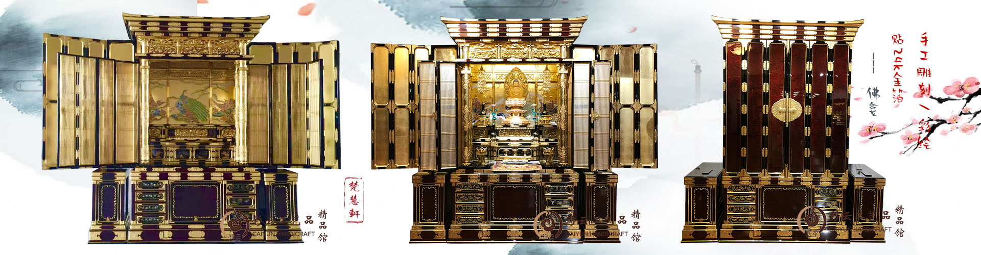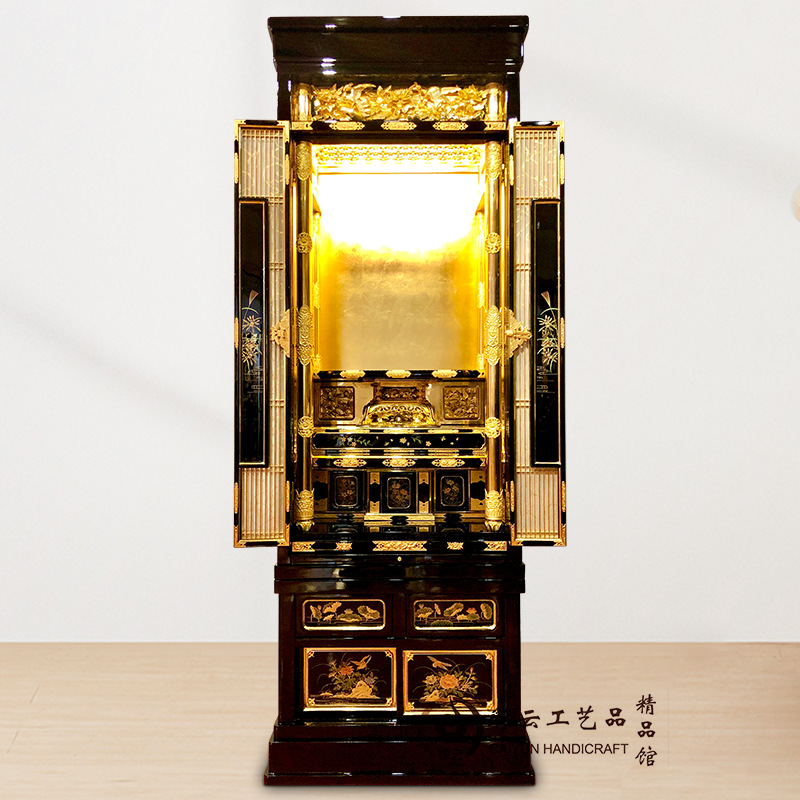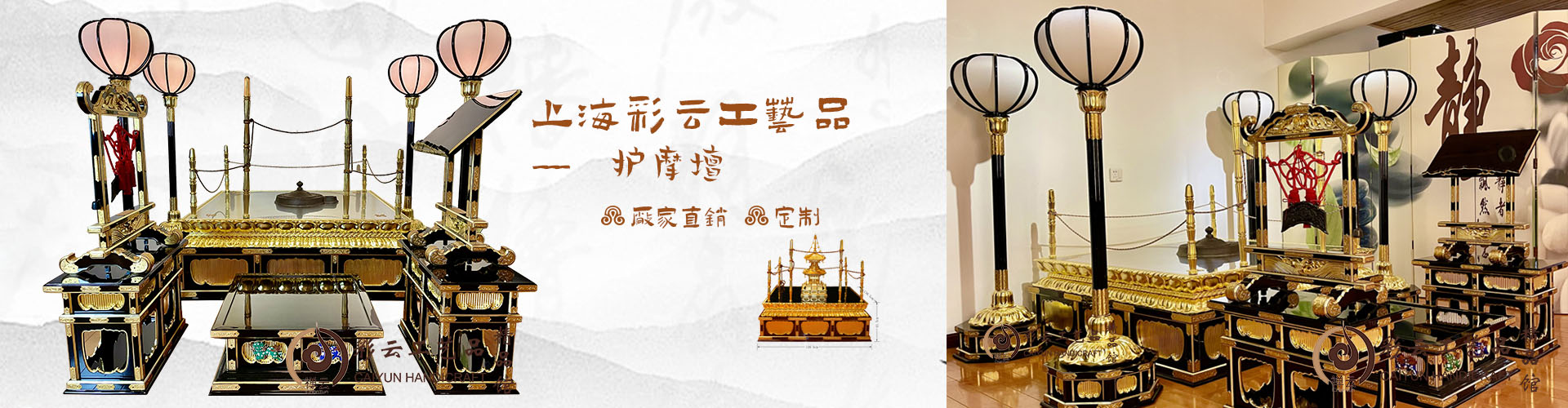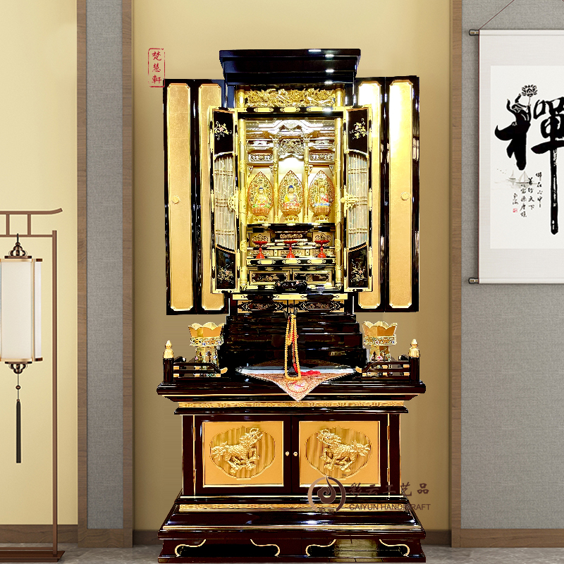 上海彩云工艺品有限公司是一家对佛文化有着深厚理解、对佛用具有多年成功生产以及丰富的设计、制造经验的企业,自2003年公司成立以来,企业首先立足于日本的佛用具市场,日本的佛用品市场是-一个较为成熟的佛教市场,经过千年的传承,来自唐代东渡的佛教文化被原汁原味的保留下来,并经过企业研发团队不断的对其各自技艺和材料的完善,正是在这种条件和背景下,企业不断学习和研究每-件产品的结构比例和工艺流程,在经过近十年时间的磨砺后,企业现在不仅占据了生产技术的位置,在业内生产规模以及销售业绩也属于龙头企业。现在本企业常年为日本、亚洲等许多大型寺庙、家庭、企业以及酒店等场所提供佛龛、佛像、佛具和相应的配套产品。