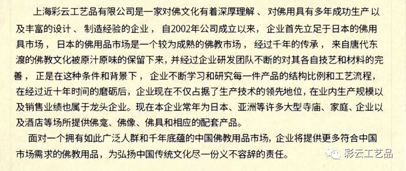 上海彩云工艺品有限公司制造佛龛为精雕细琢之手艺 ,且雕刻技艺之高,形态构思之妙。