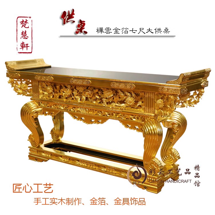 黑色大供桌手工贴24K金供台家用佛堂佛桌 会所香案桌台