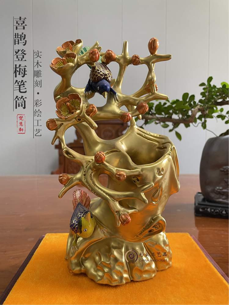 生日礼品笔墨纸砚文具用品 装饰品摆件贴金笔筒其他仿古工艺品