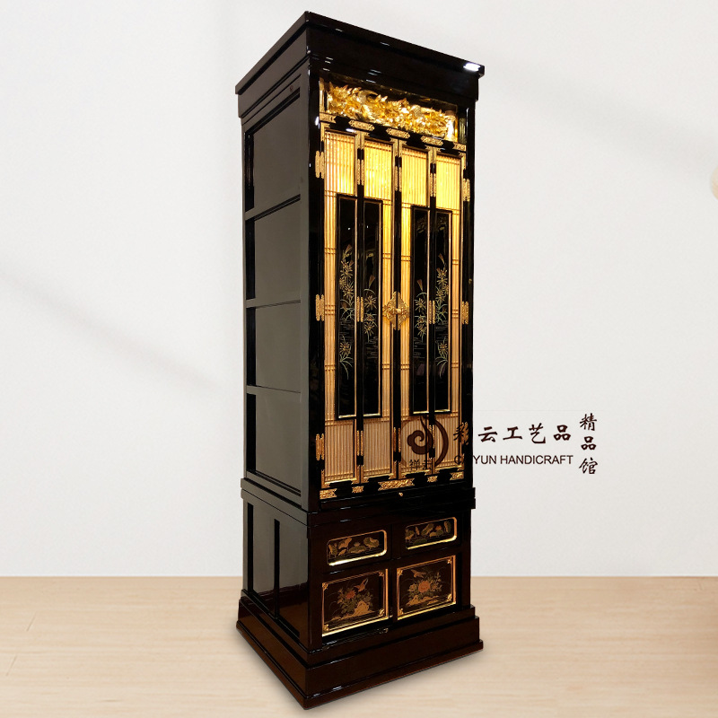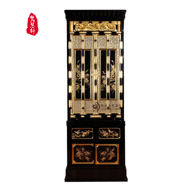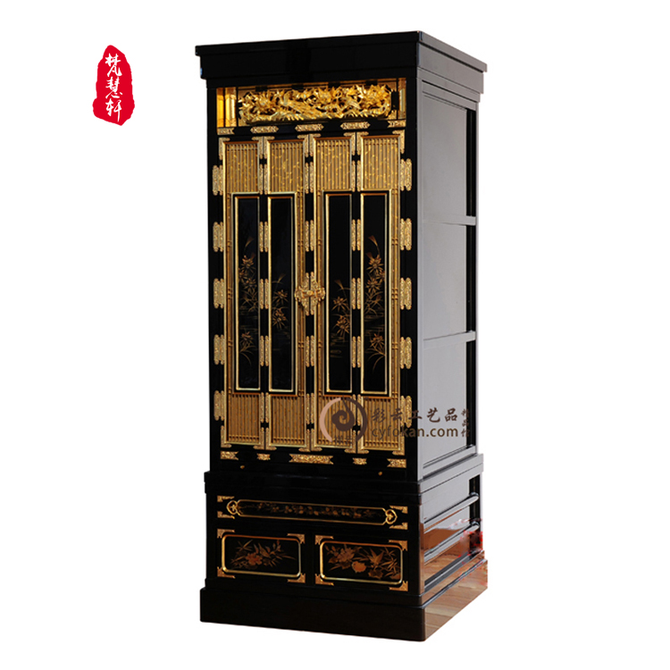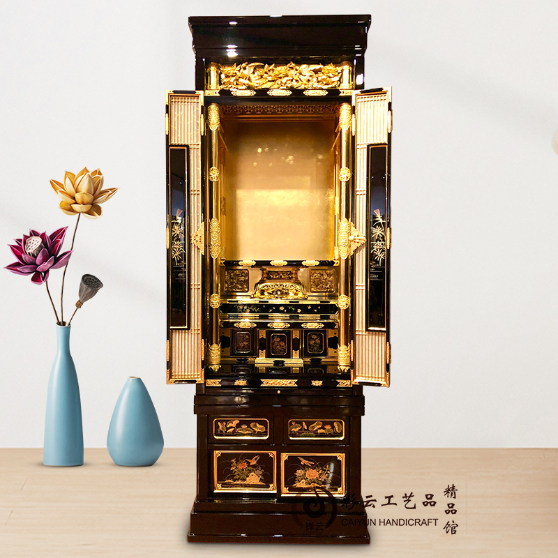禅意系列清净型实木金箔佛龛带门立柜佛台家用佛柜日式佛坛供桌柜