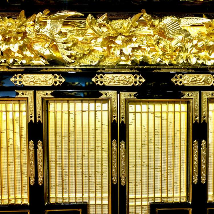 多重图案设计组合叠加层次感,手工雕刻栩栩如生,表面贴24K金箔,富丽堂皇,尊贵庄重。精益求精,非常考究匠人的用心程度与结构功力。