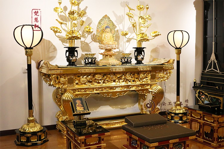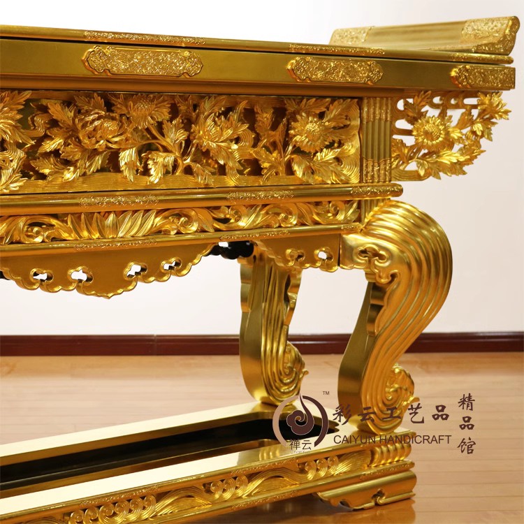 精致雕刻配金箔色泽呈现欢喜殊胜