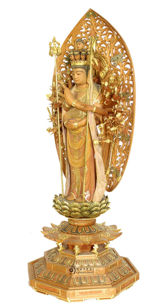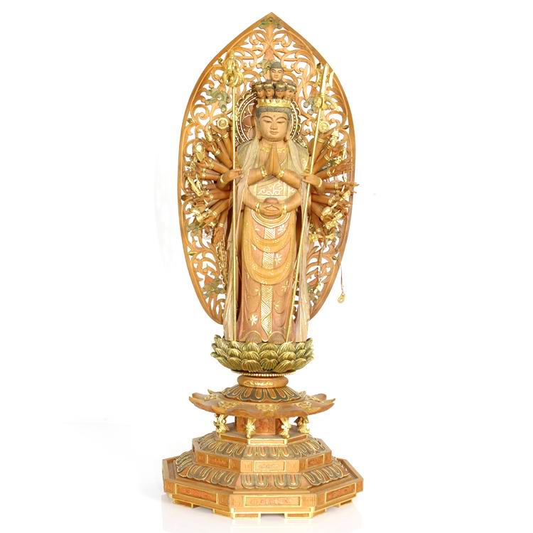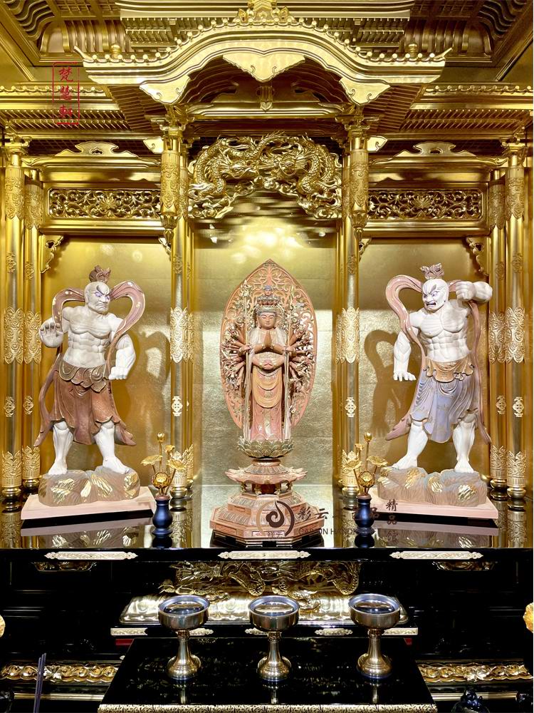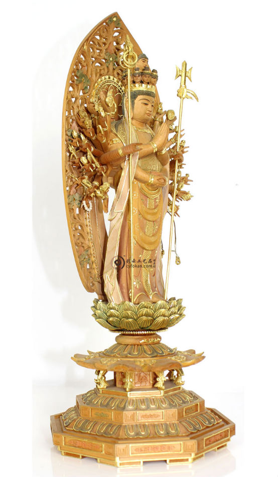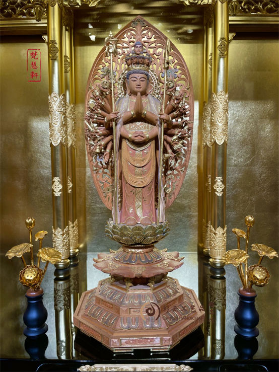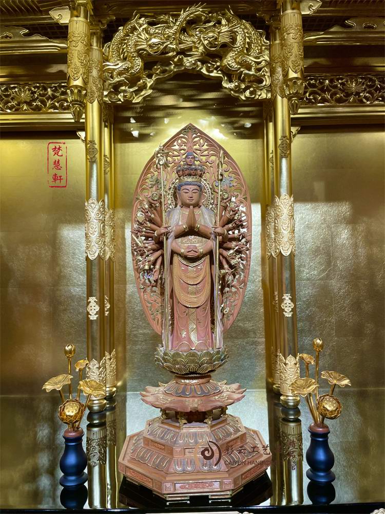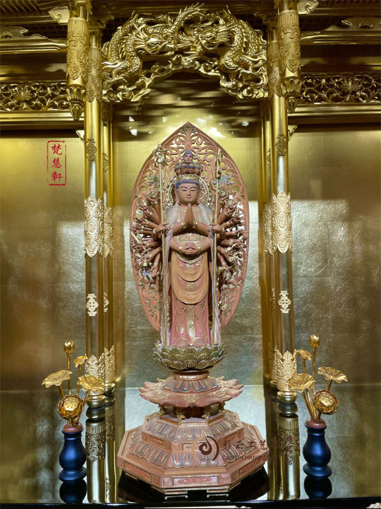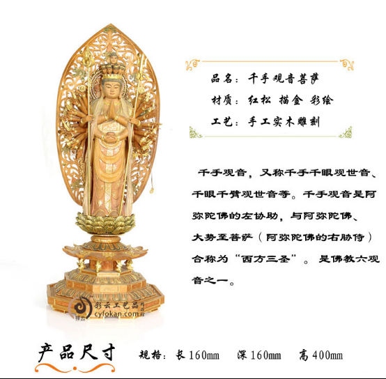 千手观音佛像佛具菩萨供奉用品家用佛堂摆件神像实木雕刻贴金工艺