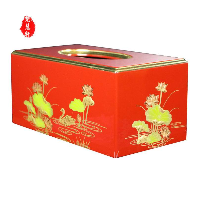 木质纸巾盒创意欧式描金彩绘抽纸盒手工制作收纳盒工艺品可定制
