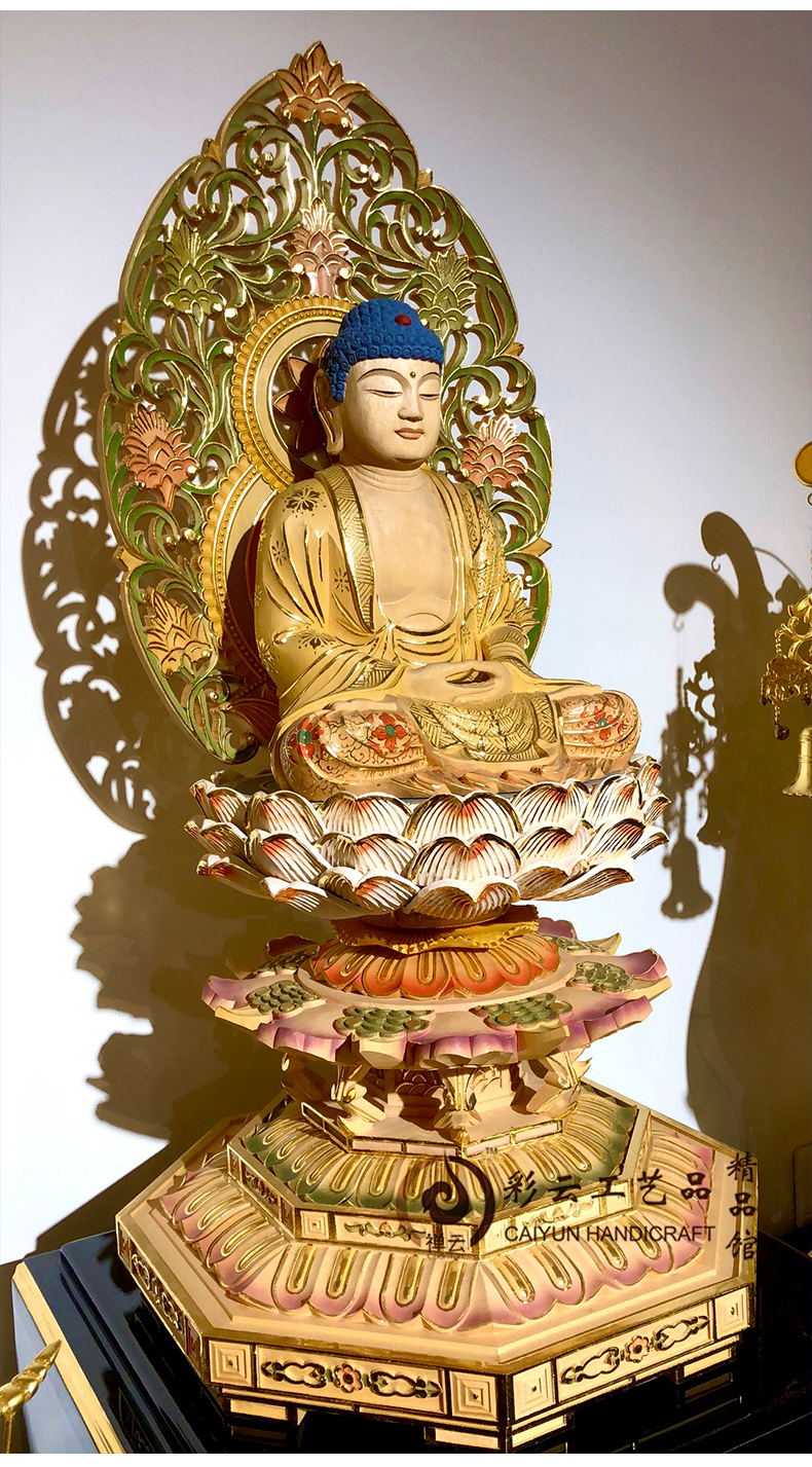 实木雕刻莲花瓣手工彩绘 手工描金